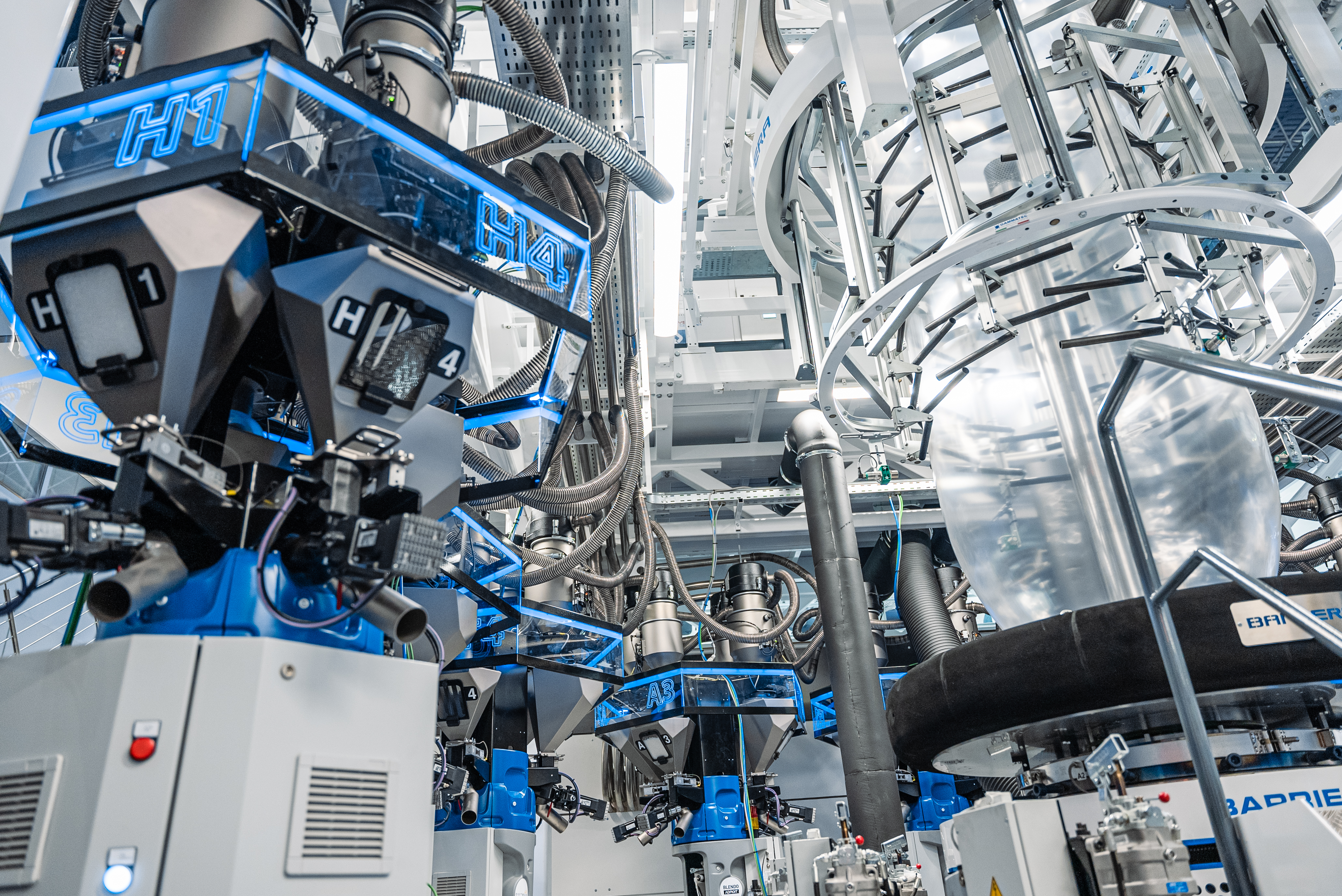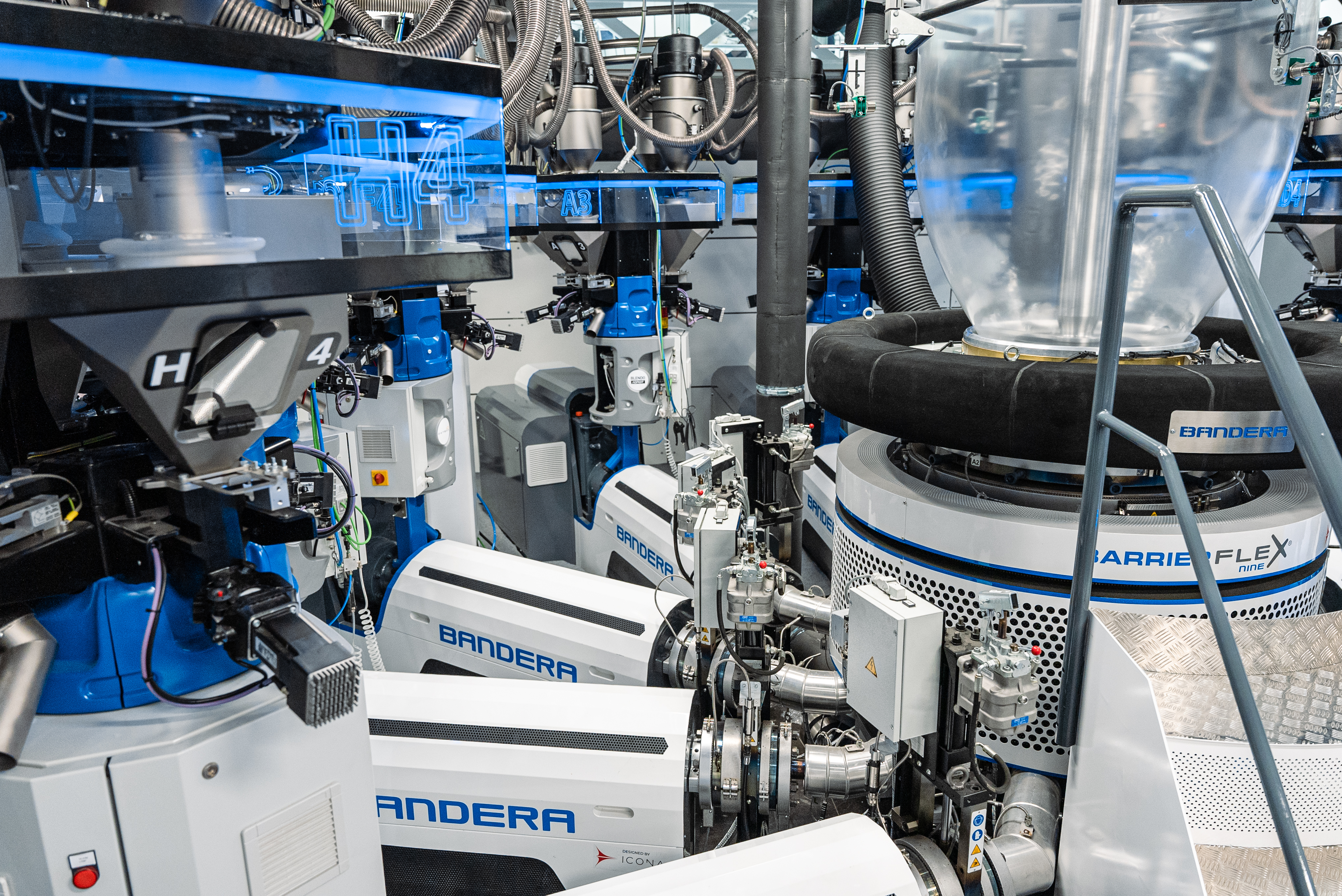 Vis de diamètre 20 à 25 mm, changeur de filtres, châssis tournant, filière de 25 à 50 mm, anneau de refroidissement, cage, soufflets, tirage, enrouleur simple ou double jusqu’à 300 mm de laize.
